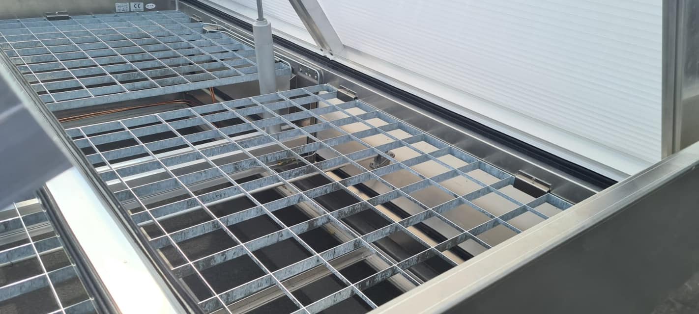 Aus Alt mach Neu. Und wieder haben wir erfolgreich eine Sanierung fertiggestellt. Ausgetauscht wurden 8 Mehrzweck-Lamellenlüfter gegen 8 Megaphönix mit Schlechtwetterlüftung und integriertem Durchsturzschutz. Nutzbar für die tägliche Be- und Entlüftung und den natürlichen Rauchabzug.